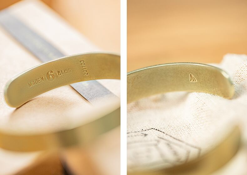 ビンテージ感溢れるレトロブリスオープニング ブレスレット【G1040】は、どんなファッションにも相性の良い逸品です。白銅素材を使用したブレスレットは、それだけで存在感がありますが、ひとつひとつ丁寧に刻まれた文字が、さらに個性的な雰囲気を醸し出しています。