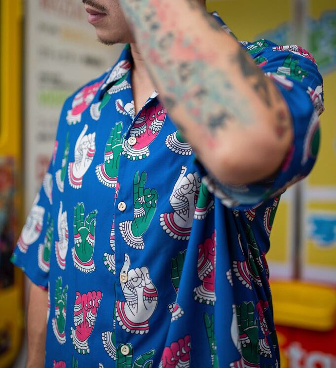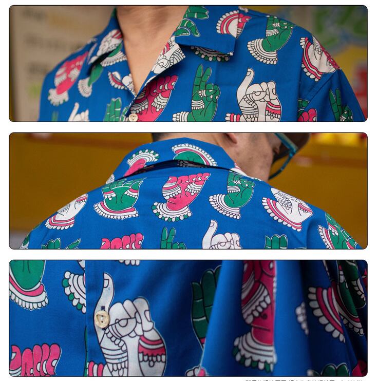 釈迦プリントにレトロ感たっぷりのアロハシャツ!人気の釈迦プリントをあしらった、レトロフルのアロハシャツです。
