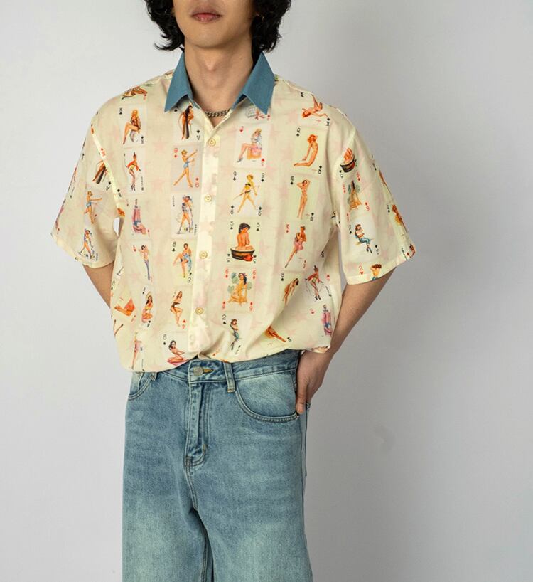 オリジナルポーカーハワイアンプリントシャツ 【G1082】